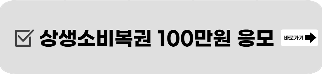 전 국민 누구나 상생소비복권 이벤트에 응모가 가능합니다. 단, 사업자와 법인은 제외되며 국내 통장 보유 및 발행이 가능한 개인으로 한정됩니다. 응모 기간은 7일간의 동행 축제 기간인 9월 1일부터 7일까지이며, 이 기간 동안 소비한 영수증만 상생소비복권 이벤트에 응모가 가능합니다. 상생소비복권 추첨일은 9월 3째주이며 전자추첨방식으로 당첨자를 결정합니다.