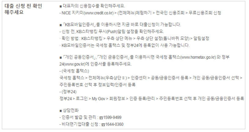 - 대표자의 개인신용평점이 744점이하면서(NICE평가기준) 희망대출 기이용자